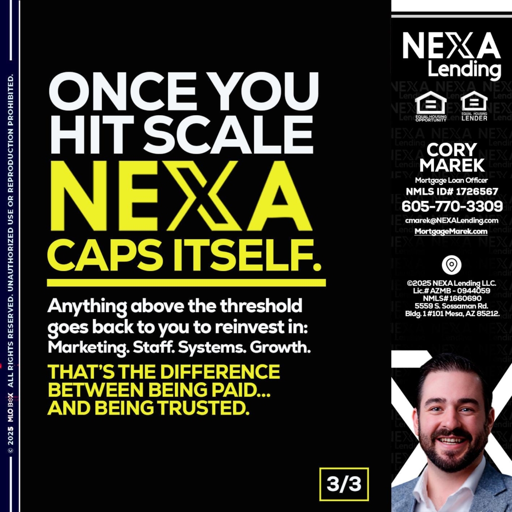 3 OF 3 - Cory Marek -Mortgage Loan OfficerHi, my name is Cory Marek. I’m a Loan Officer with NEXA Lending LLC., offering personalized mortgage solutions, fast customized quotes, great rates and service with integrity.