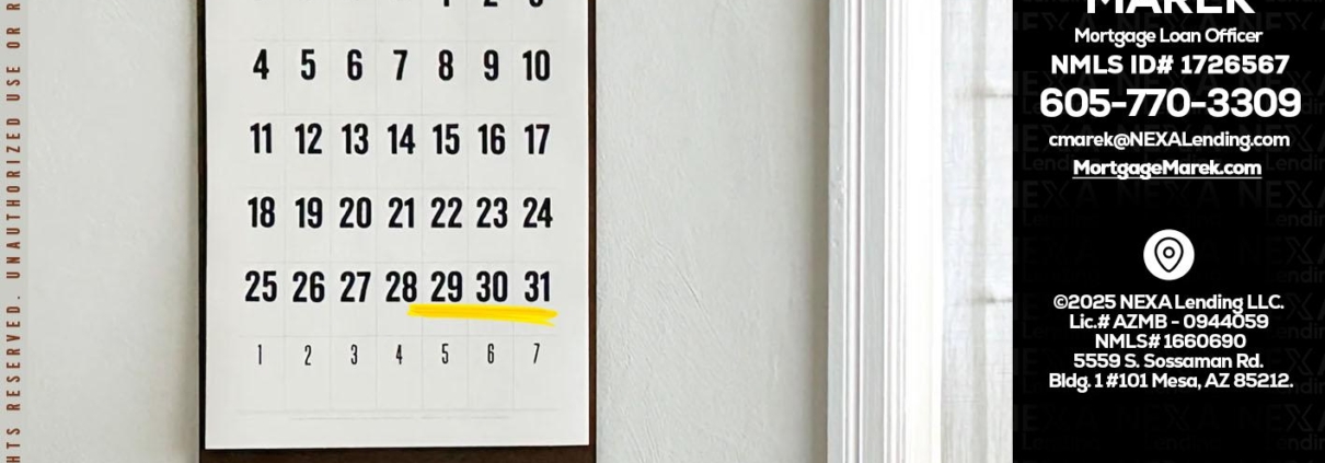 FEBRUARY 29-31 - Cory Marek -Mortgage Loan OfficerHi, my name is Cory Marek. I’m a Loan Officer with NEXA Lending LLC., offering personalized mortgage solutions, fast customized quotes, great rates and service with integrity.