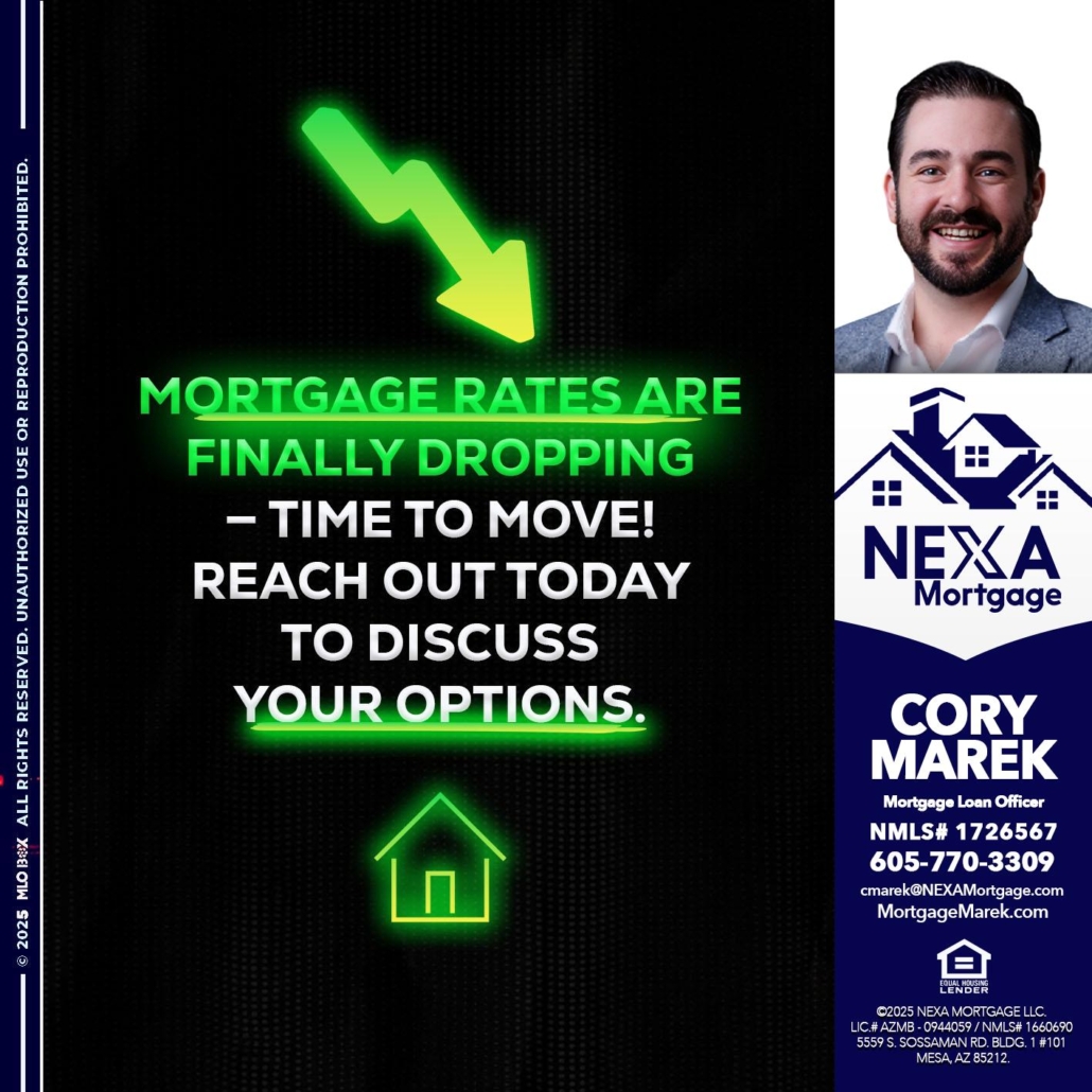 Hi, my name is Cory Marek. I’m a Loan Officer with NEXA Mortgage LLC., offering personalized mortgage solutions, fast customized quotes, great rates and service with integrity.