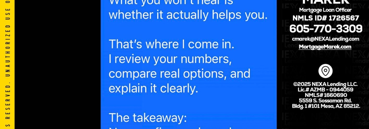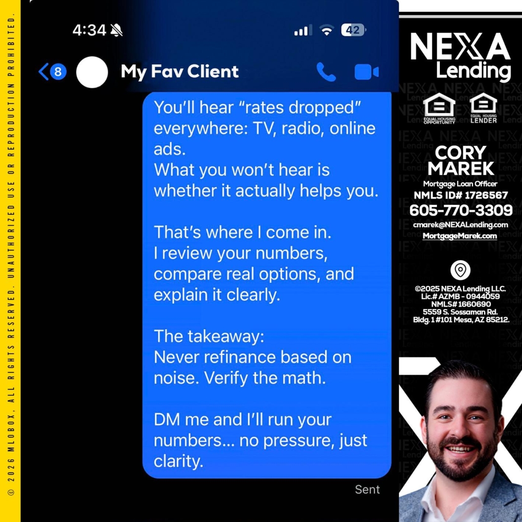 Hi, my name is Cory Marek. I’m a Loan Officer with NEXA Lending LLC., offering personalized mortgage solutions, fast customized quotes, great rates and service with integrity.
