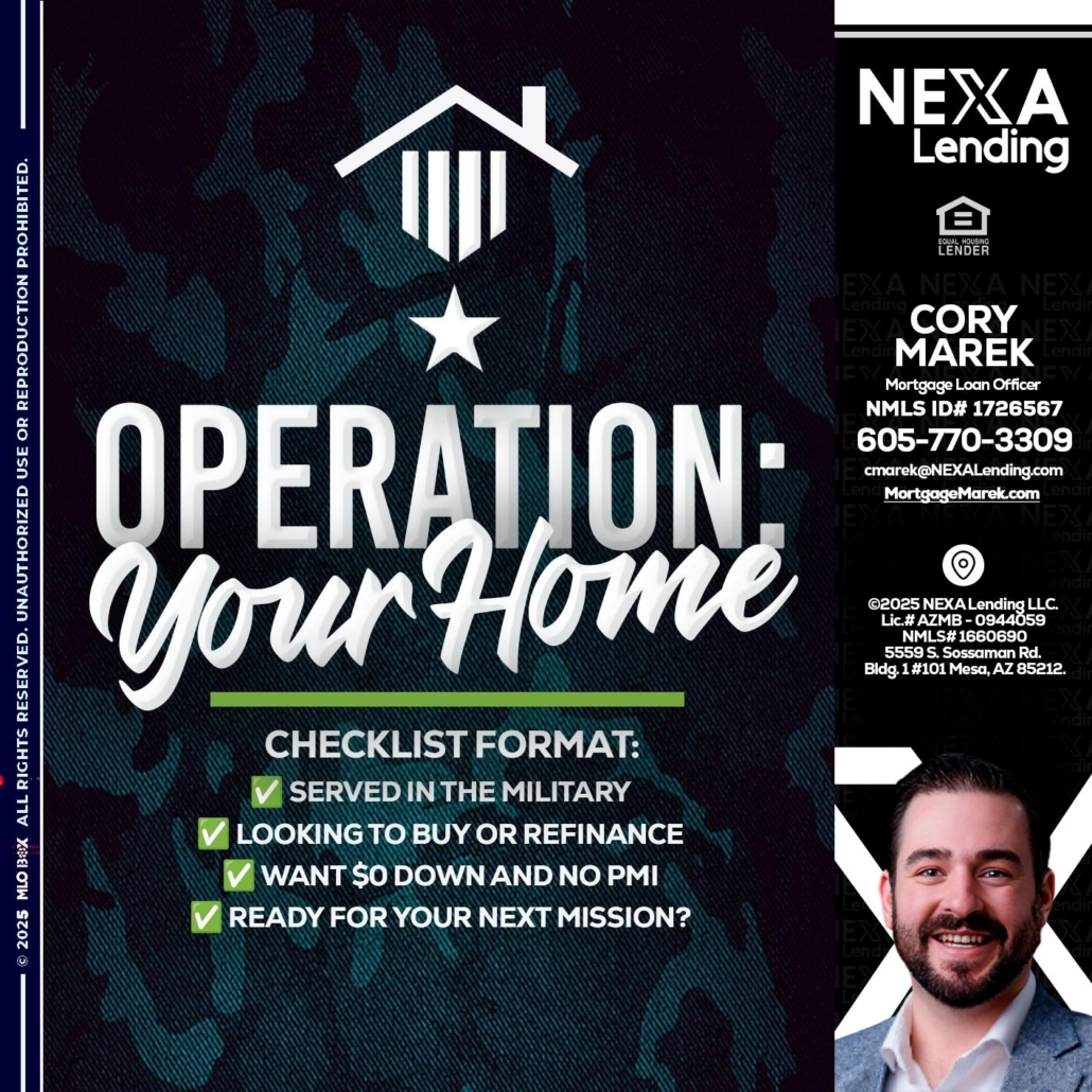 Hi, my name is Cory Marek. I’m a Loan Officer with NEXA Mortgage LLC., offering personalized mortgage solutions, fast customized quotes, great rates and service with integrity.