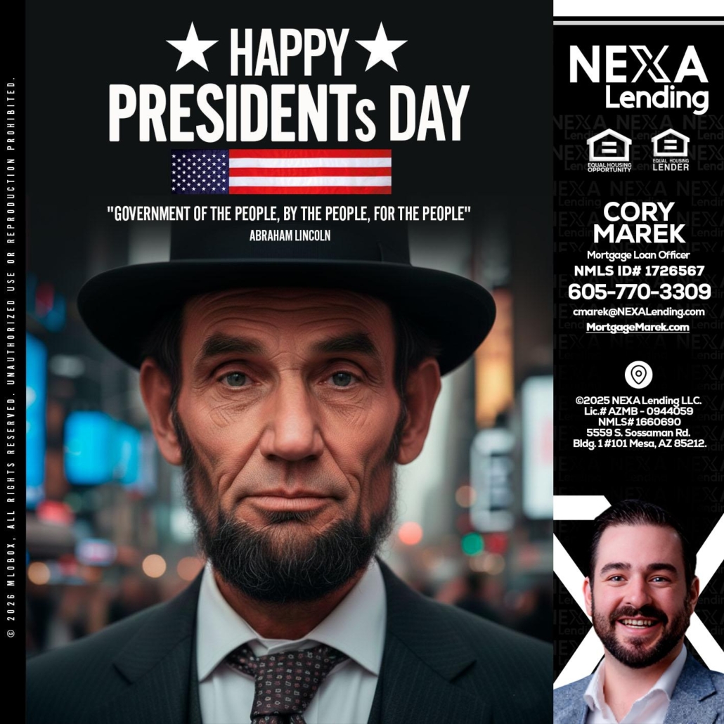 PRESIDENTS DAY - Cory Marek -Mortgage Loan OfficerHi, my name is Cory Marek. I’m a Loan Officer with NEXA Lending LLC., offering personalized mortgage solutions, fast customized quotes, great rates and service with integrity.