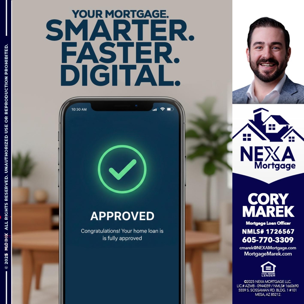 Hi, my name is Cory Marek. I’m a Loan Officer with NEXA Mortgage LLC., offering personalized mortgage solutions, fast customized quotes, great rates and service with integrity.
