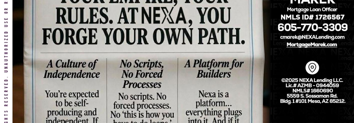 Hi, my name is Cory Marek. I’m a Loan Officer with NEXA Lending LLC., offering personalized mortgage solutions, fast customized quotes, great rates and service with integrity.
