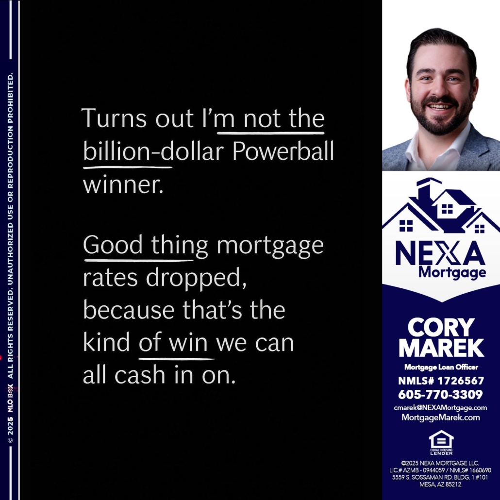 TURNS OUT - Cory Marek -Mortgage Loan OfficerHi, my name is Cory Marek. I’m a Loan Officer with NEXA Mortgage LLC., offering personalized mortgage solutions, fast customized quotes, great rates and service with integrity.