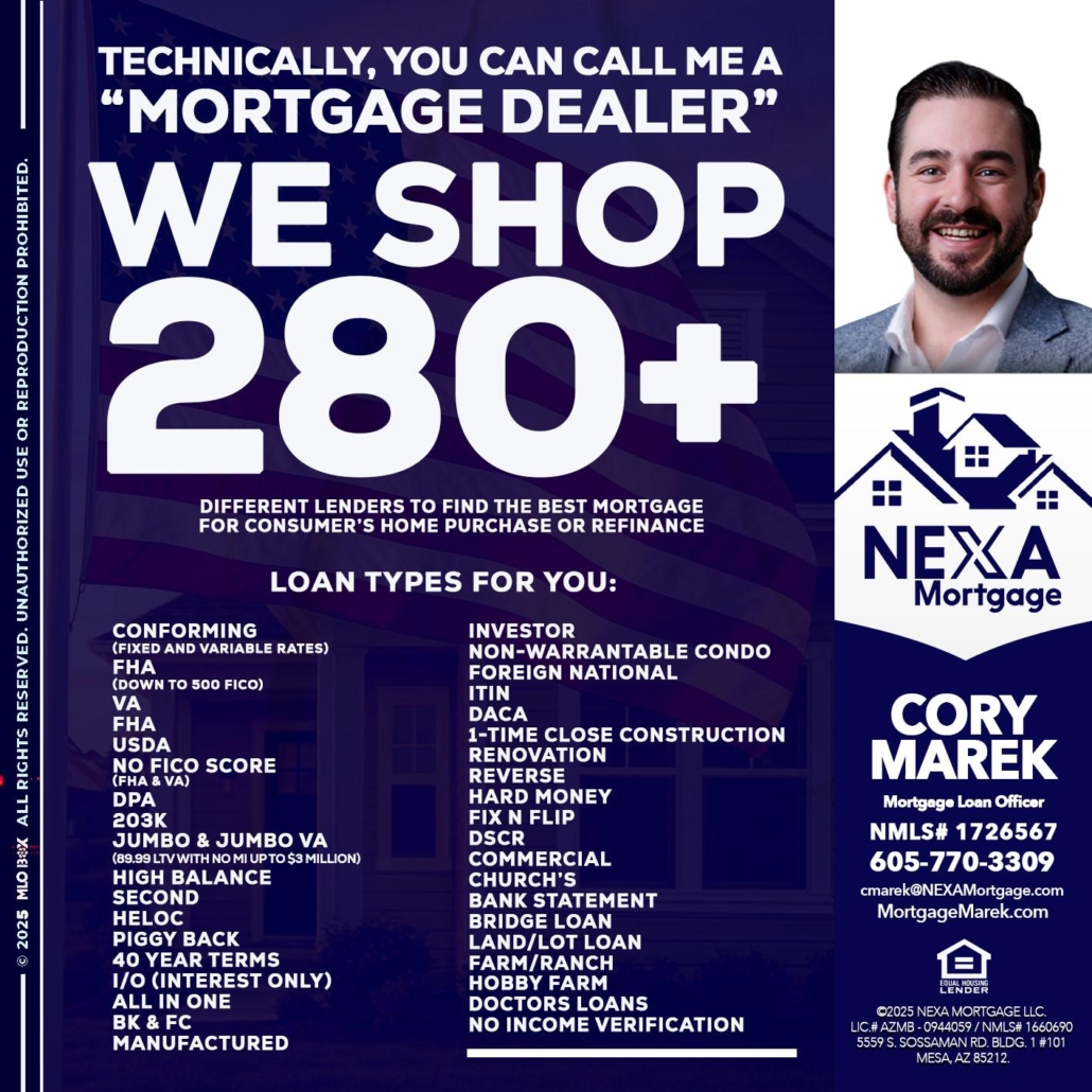 Hi, my name is Cory Marek. I’m a Loan Officer with NEXA Mortgage LLC., offering personalized mortgage solutions, fast customized quotes, great rates and service with integrity.